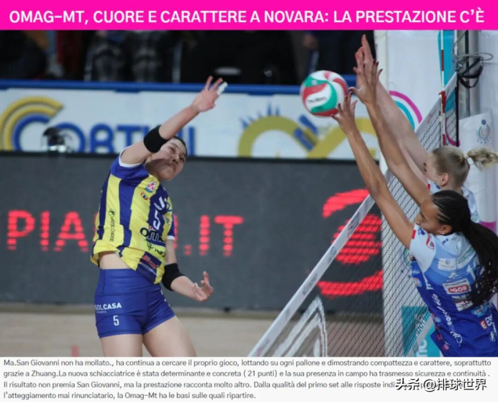 虽然圣乔瓦尼再次输球,却展现了不容小觑的拼搏精神与团队韧性,个人数据方面,尤其是庄宇珊,再次斩获全队最高的21分(54扣19中1拦1发),并且登上意甲联赛官方封面,收获媒体与球迷的广泛认可。